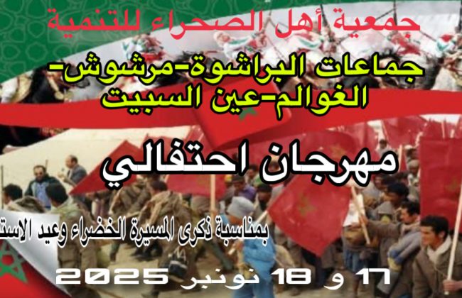 عبد العالي بوعرفي – تيفلت بريس تخليدا للذكرى الخمسين للمسيرة الخضراء المظفرة والذكرى 70 لعيد الاستقلال المجيد تنظم جماعة أولماس
