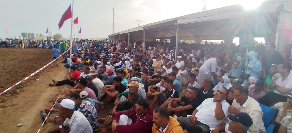 شهد، اليوم الثاني من “موسم التبوريدة” بجماعة مقام الطلبة دائرة تيفلت إقليم الخميسات رقماً قياسيا فاق كل التوقعات من حيث الزوار و هواة الخيل الذين قدِموا من كل مناطق الإقليم، فاق عددهم 35 ألف شخص اليوم السبت 20 غشت الجاري و حلوا من أجل متابعة العروض الشيقة للفروسية التقليدية، و أيضا الاستمتاع بالإيقاعات الفولكلورية التي تجسد التراث المحلي الأصيل.