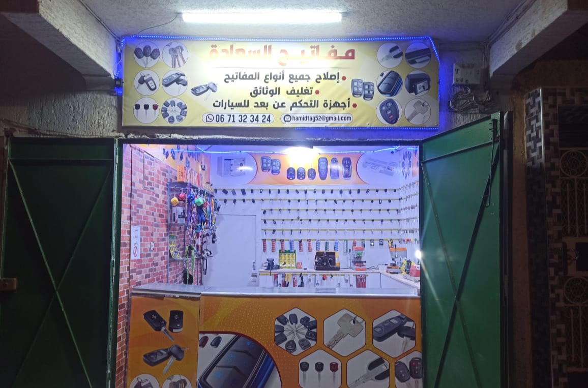 ويتخصص هذا المحل في برمجة مفاتيح السيارات ونسخ جميع المفاتيح بشتى أنواعها بالاضافة الى تغليف الوثائق وغيرها من الخدمات بحرفية ومهنية عالية نظرا للتجربة التي راكمها الشاب أحمد صاحب المحل في هذا المجال، كما يوفر المحل خدمة dépannage المتعلقة بفتح جميع أبواب المنازل وكذا السيارات في حالة فقدان المفاتيح.