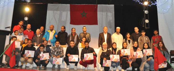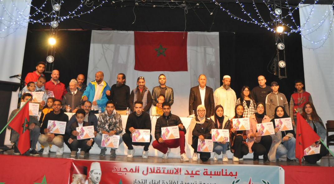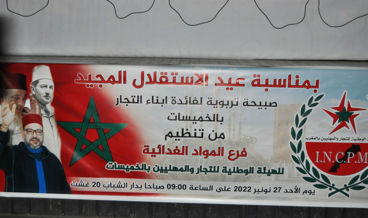 بمناسبة الذكرى 67 لعيد الاستقلال المجيد نظم مكتب فرع المواد الغذائية التابع للهيئة الوطنية للتجار و المهنيين بالخميسات صبحية تربوية لفائدة أبناء التجار وذلك يومه الأحد 27 نونبر 2022 بالقاعة الكبرى لدار الشباب 20 غشت . هذا الحفل المميز لقى استحسان التجار وأبنائهم وعرف إقبالا كبيرا و حضورا مكثفا تخللته عدة أنشطة و فقرات متنوعة تجاوب معها الحاضرون، كما شهد ذات الحفل تكريم أبناء التجار المتفوقين دراسيا و تقديم حوافز تشجيعية و هدايا لهم بدعم من شركة إنوي ، وفي ختام هذا الحفل الذي كان ناجحا بكل المقاييس تم رفع برقية ولاء و إخلاص للسدة العالية بالله مولانا امير المؤمنين صاحب الجلالة الملك محمد السادس نصره الله.
