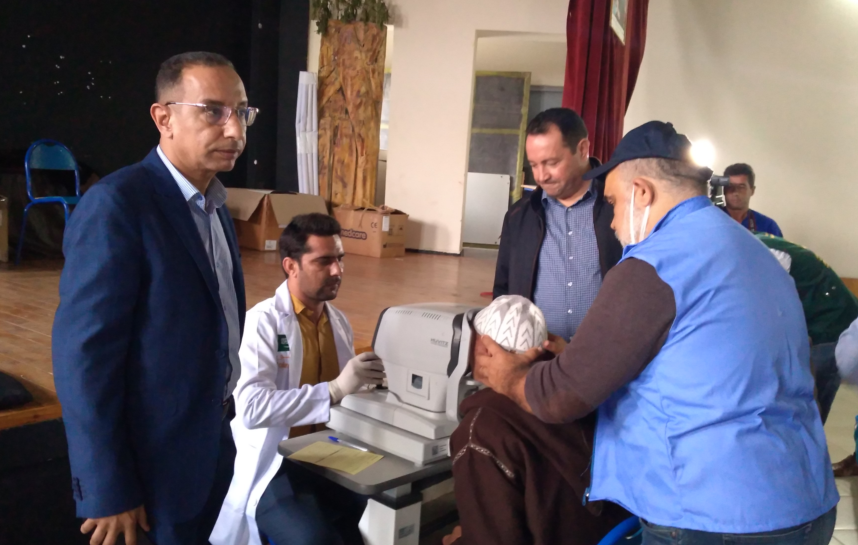 شهد مقر دار الشباب 9 يوليوز بمدينة تيفلت اليوم الاثنين 28 نونبر 2022 توافد المئات من المواطنين للاستفادة من الفحوصات الطبية اللازمة لتحديد المرضى المصابين بمرض المياه البيضاء “الجلالة” لإخضاعهم لعمليات جراحية لإزالتها من طرف الطاقم الطبي المنحدر من دولة باكستان المشرف على الحملة الطبية المنظمة من طرف وزارة الصحة أيام 28-29-30 نونبر و 1-2 دجنبر 2022 بمستشفى القرب بمدينة تيفلت بشراكة مع مؤسسة البصر العالمية وبتعاون مع المجلس الجماعي لتيفلت والسلطات المحلية تحت شعار “لعيون تبصر الأمل” ، والتي سيستفيد منها حوالي 600 مريض ومريضة من مختلف جماعات إقليم الخميسات.