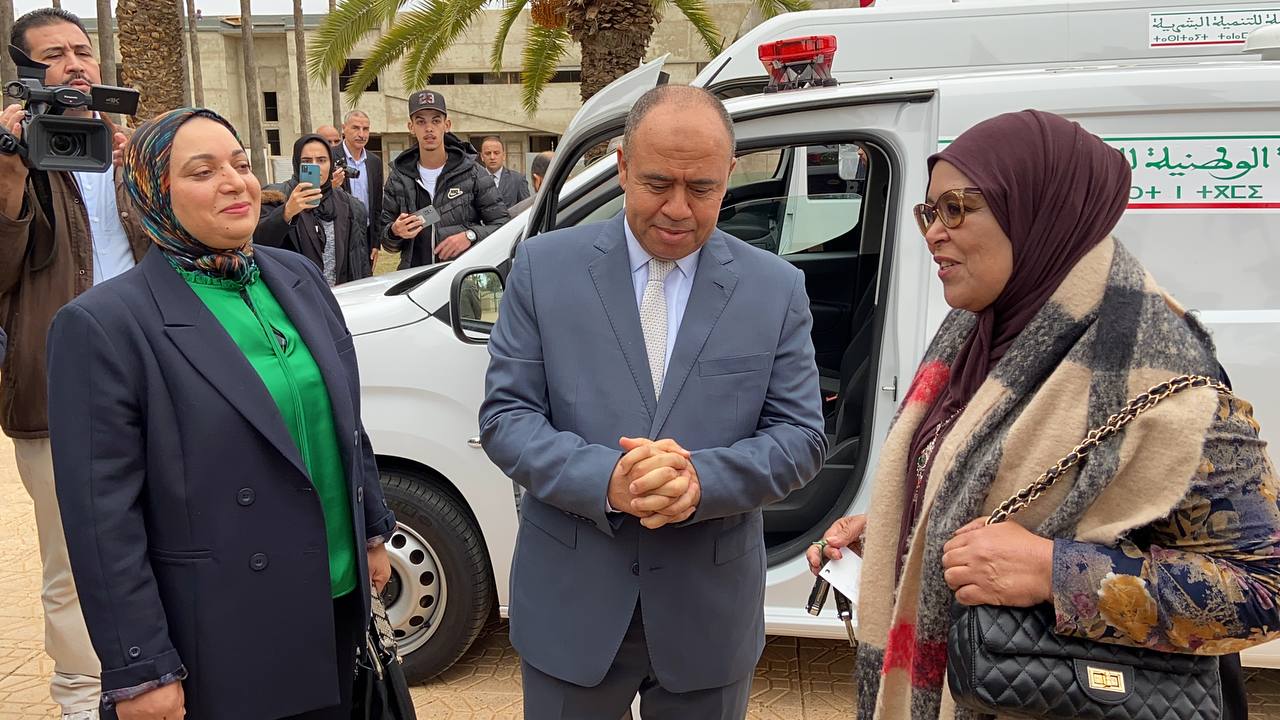 بالصور عامل الخميسات يشرف على تسليم سيارة إسعاف وسيارة لنقل مرضى القصور الكلوي.