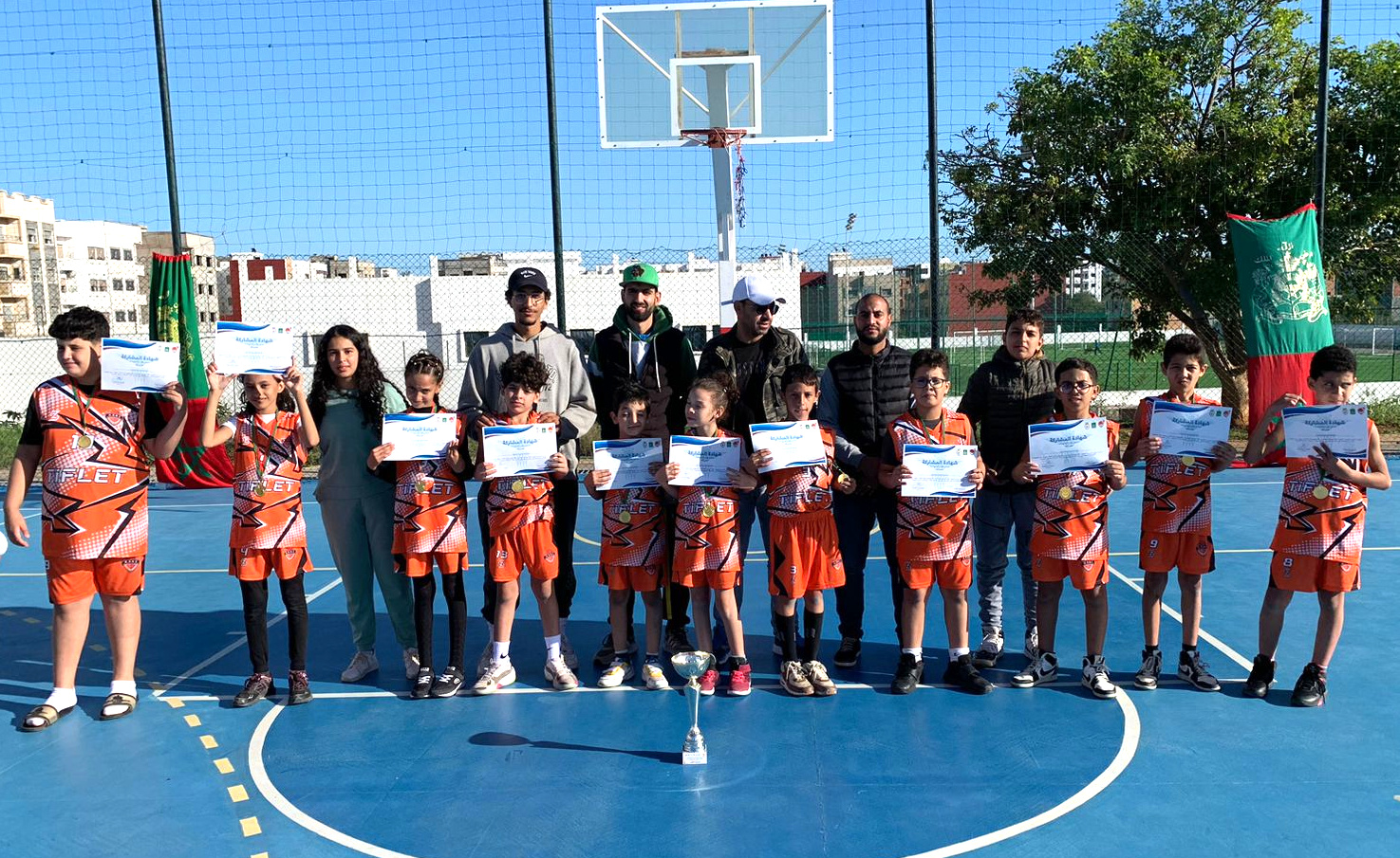 تمكن فريق نادي الأنصار لكرة السلة تيفلت لفئة الأقل من 12 سنة من الفوز بالرتبة الأولى في الدوري المنظم من طرف نادي بدر القنيطري لكرة السلة بمدينة القنيطرة، بمناسبة الذكرى 48 للمسيرة الخضراء المظفرة ، والفوز بكأس هذا الدوري بعد اداء مميز وخطف الأضواء وتألق معظم اللاعبين الذين اكتسبوا تجربة وتقنيات مهمة بفضل الفريق التقني المشرف على وفي مقدمته رئيس الجمعية أنس اليزيد، الذي شكر رئيس نادي بدر القنيطري السيد عمر البياضي على حسن الإستضافة كما هنأ اللاعبين على التتويج المستحق وشكرهم على الأداء البطولي وتشريفهم لمدينة تيفلت تمثيلها أحسن تمثيل .
