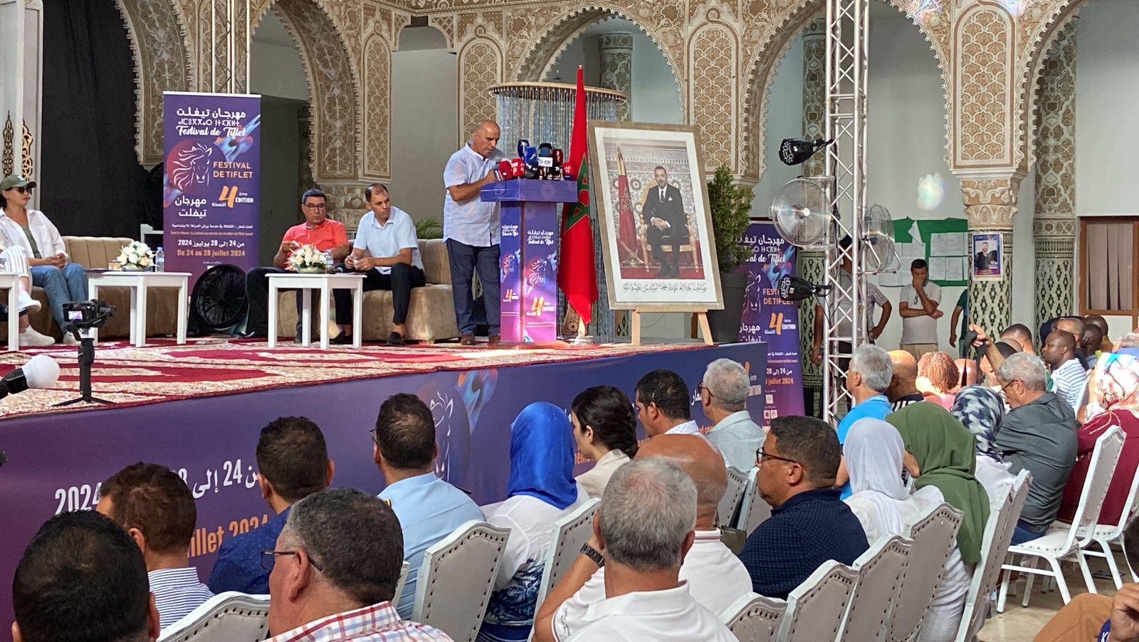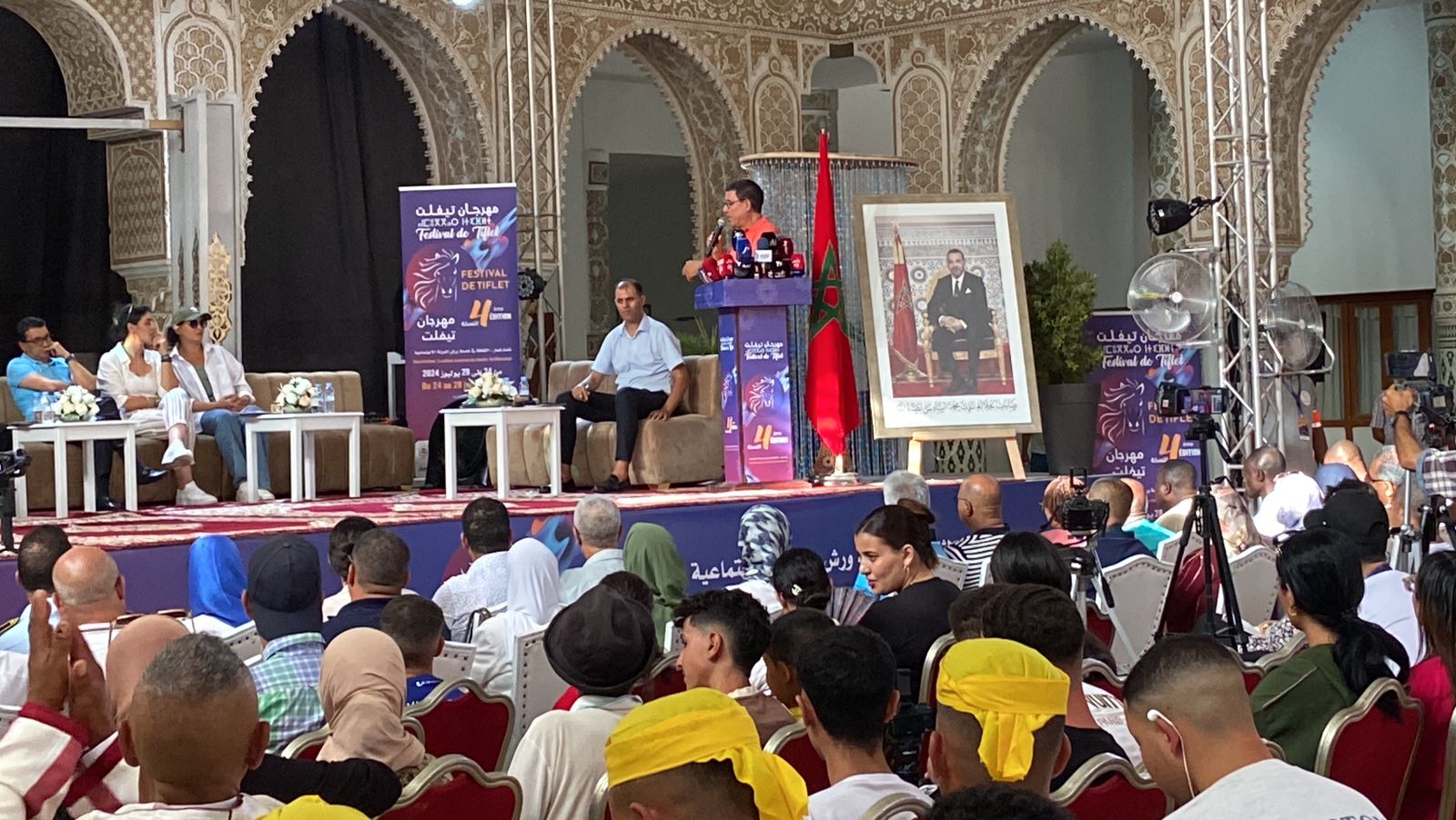احتضن القصر البلدي لمدينة تيفلت مساء اليوم الأربعاء 24 يوليوز 2024 حفل افتتاح المهرجان الثقافي والرياضي والفني لمدينة تيفلت في نسخته الرابعة المنظم تحت شعار “الثقافة في خدمة ورش الدولة الاجتماعية.” وذلك أيام 24-25-26-27-28 يوليوز الجاري من طرف جمعية أطلس تيفلت زمور للثقافة والتنمية والإبداع بمناسبة الاحتفال بذكرى عيد العرش المجيد بشراكة مع المجلس الجماعي لمدينة تيفلت وبتعاون مع عمالة إقليم الخميسات.حضر حفل الافتتاح رئيس المجلس البلدي لتيفلت وباشا المدينة وقياد الملحقات الادارية ورئيس مفوضية الأمن وقائد ثكنة الوقاية المدنية وقائد القوات المساعدة والمندوب الاقليمي للصحة بالخميسات ووفد من 11 دولة إفريقية والولايات المتحدة الامريكية ومجموعة من الممثلين المغاربة والمنتخبين وفعاليات جمعوية وإعلامية وحشد غفير من ساكنة المدينة.