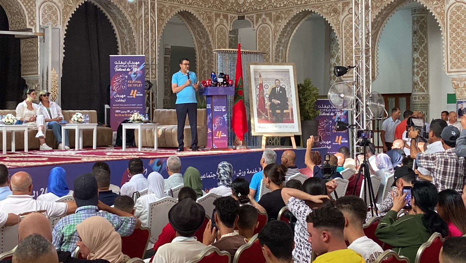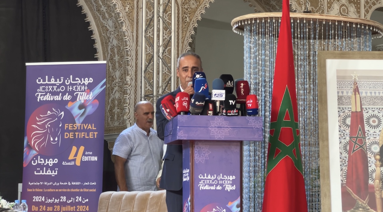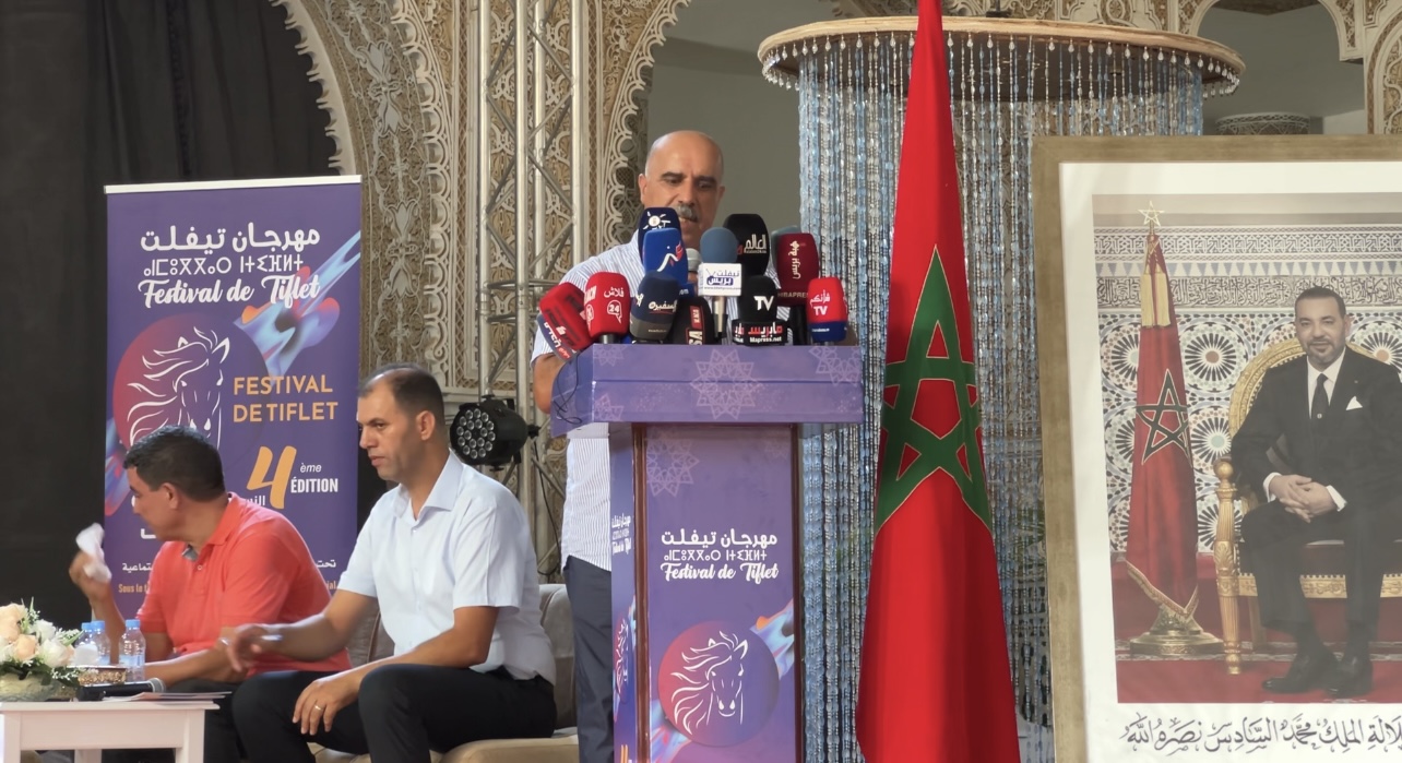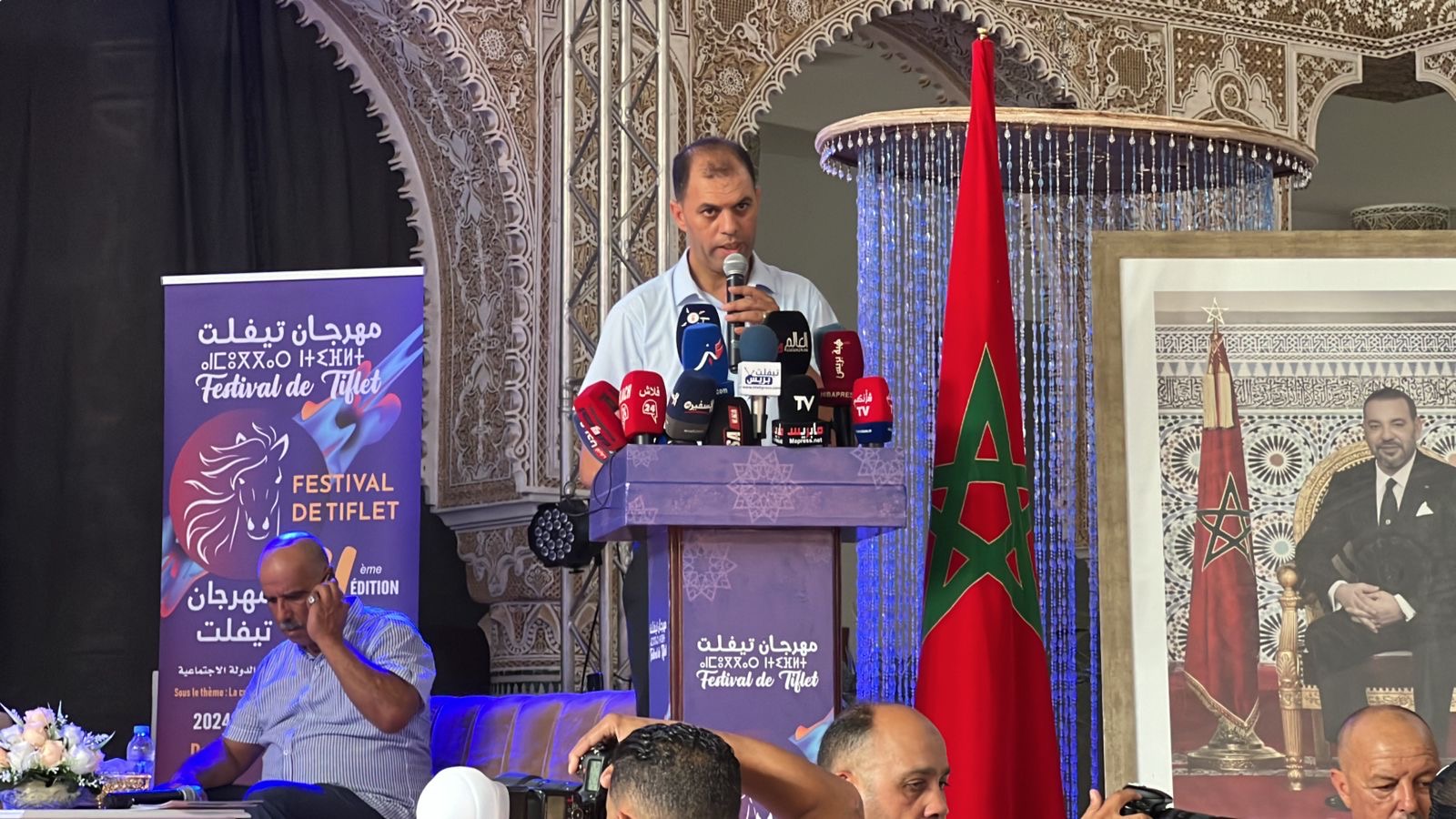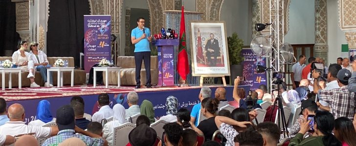فيما أكد رئيس المجلس البلدي عبد الصمد عرشان في كلمته أن المجلس الجماعي لتيفلت ينصب اهتمامه على الثقافة والفن والرياضة لأنهم يعتبرون رافعة للتنمية المحلية وأن اختيار شعار هذه الدورة “الثقافة في خدمة ورش الدولة الإجتماعية” جاء تنفيدا للتعليمات الملكية السامية، ،شاكرا ساكنة تيفلت على حضورها الكثيف والمميز لحفل الافتتاح والذي إن دل على شيئ إنما يدل على شغفهم بالفن والثقافة متمنيا للجميع قضاء اوقات ممتعة طيلة أيام المهرجان الذي يعتبر مرآة مدينة تيفلت وسيساهم لا محالة في إشعاعها على الصعيد الوطني ،مشيرا انهم اختاروا شهر يوليوز لتنظيم المهرجان لأنه يصادف ذكرى عزيزة على كل المغاربة وهي عيد العرش المجيد بالإضافة أيضا لتزامنه مع عودة أبناء المنطقة من ديار المهجر ..متمنيا ان تكون هذه الدورة ناجحة وتعرف حضور جماهري مكثف ،شاكرا الجهات الداعمة على رأسها وزارة الثقافة ووزارة الفلاحة وشركة سيدي علي ومجموعة أكوا وغيرها، كما شكر السلطات المحلية على رأسها عامل الإقليم و باشا المدينة والمصالح الأمنية ومندوبية وزارة الصحة والمنابر الاعلامية وكافة المتدخلين .