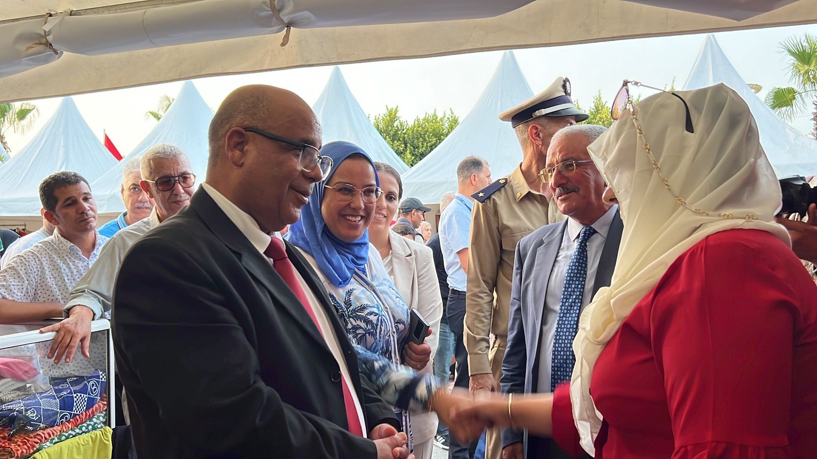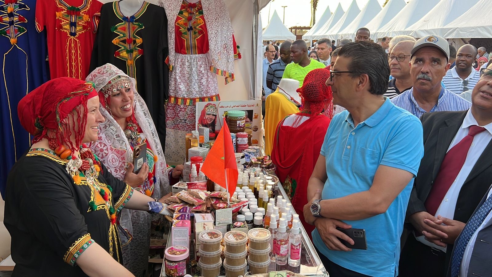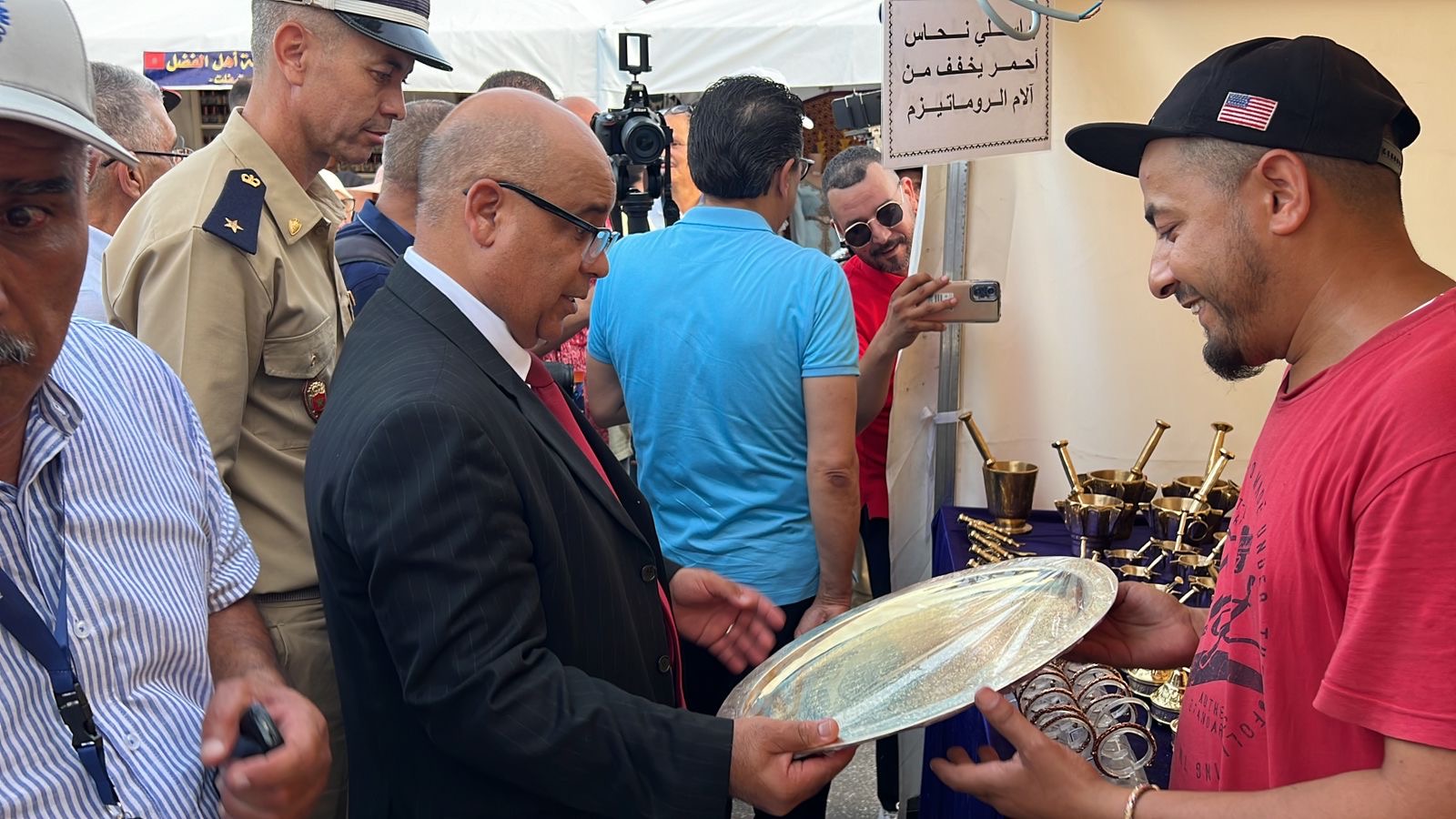 وتوجه الوفد مباشرة الى معرض الصناعة التقليدية بساحة النصر بفضاء الدالية المنظم بتنسيق مع الغرفة الجهوية للصناعة التقليدية ،حيث بعد قص شريط الافتتاح قام الوفد بزيارة لجميع أروقته وتم التعرف على المنتوجات المعروضة حيث شكر العارضون رئيس جماعة تيفلت عبد الصمد عرشان على توفيره للظروف المناسبة من أجل انجاح هذا المعرض السنوي الذي يعرف اقبالا كبيرا من طرف ساكنة المدينة وزوارها.