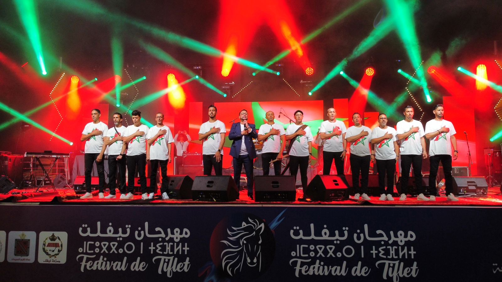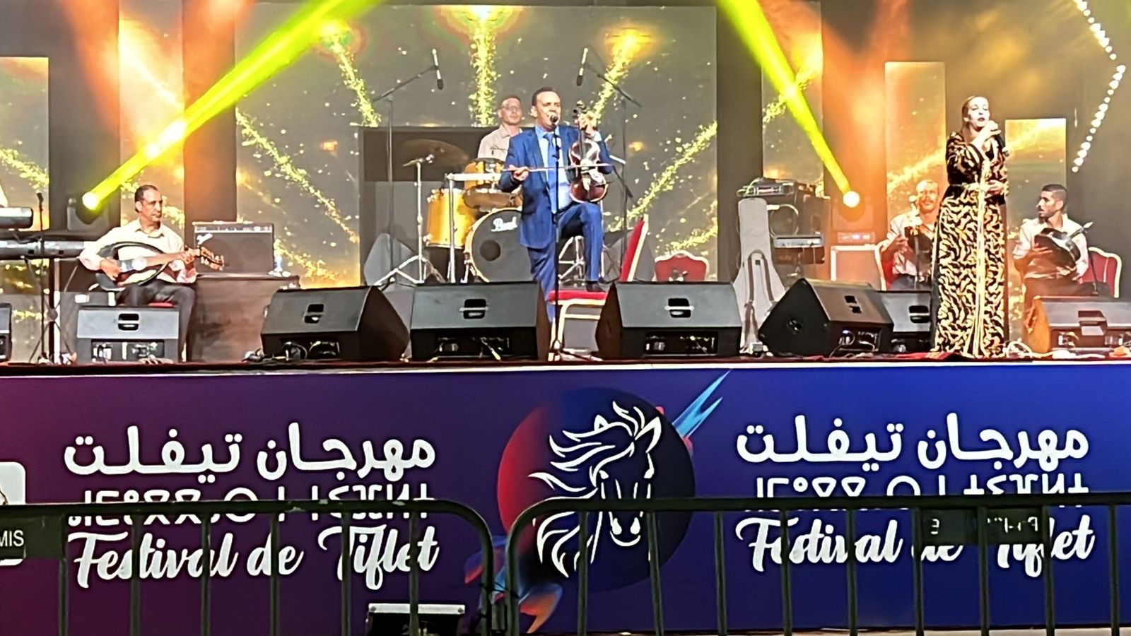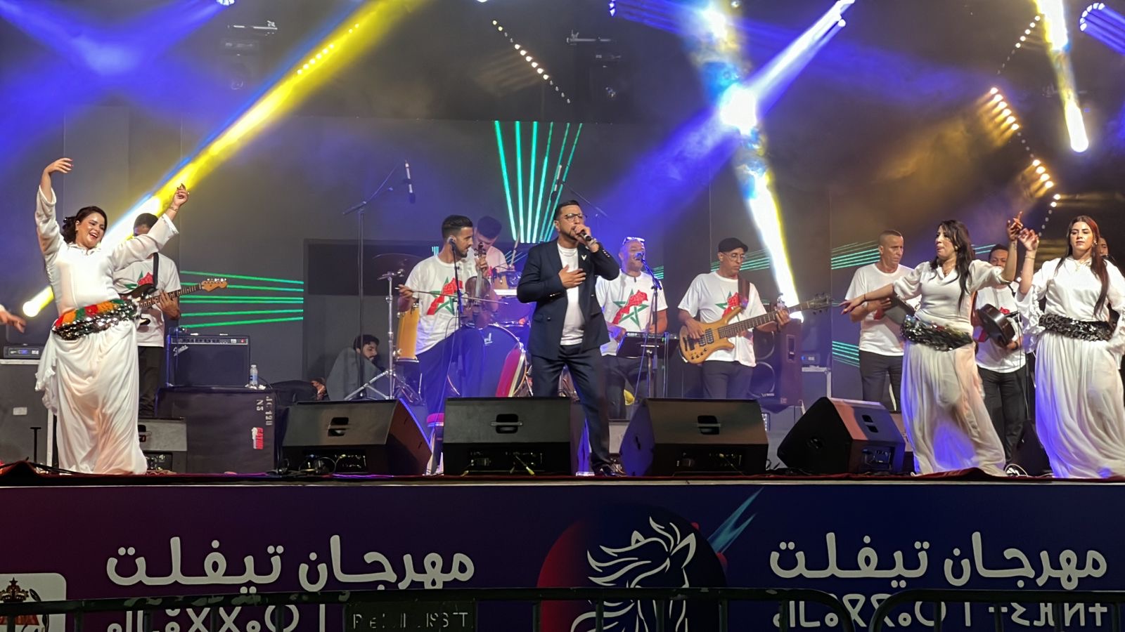 احتضنت المنصة الكبرى بساحة مولاي الحسن بحي الدالية بمدينة تيفلت ليلة السبت 27 يوليوز السهرة الرابعة والاخيرة للمهرجان الثقافي والرياضي والفني لمدينة تيفلت في نسخته الرابعة المنظم بمناسبة الاحتفال بذكرى عيد العرش المجيد تحت شعار “الثقافة في خدمة ورش الدولة الاجتماعية” بشراكة مع المجلس الجماعي لمدينة تيفلت وبتعاون مع عمالة اقليم الخميسات .عرفت هذه السهرة الفنية حضورا جماهيريا مكثفا فاق كل التوقعات من ساكنة مدينة تيفلت والجماعات والمدن المجاورة ،الجمهور الحاضر تجاوب مع الفنانين المشاركين فرقة أولاد ابراهيم و الفنانين عزيز خير ونجاة الرجوي وزكريا الغافولي وعبد الله الداودي ، وعرفت هذه السهرة التي كانت ناجحة بكل المقاييس حضور حضور باشا المدينة سعيد الصالحي وقياد الملحقات الادارية وورئيس المنطقة الاقليمية للأمن بالخميسات المراقب العام خالد برخلي ورئيس مفوضية الأمن العميد الممتاز عبد القادر عزيزي ومسؤولي القوات المساعدة وقائد ثكنة الوقاية المدنية والعديد من المنتخبين والفعاليات وضيوف المهرجان