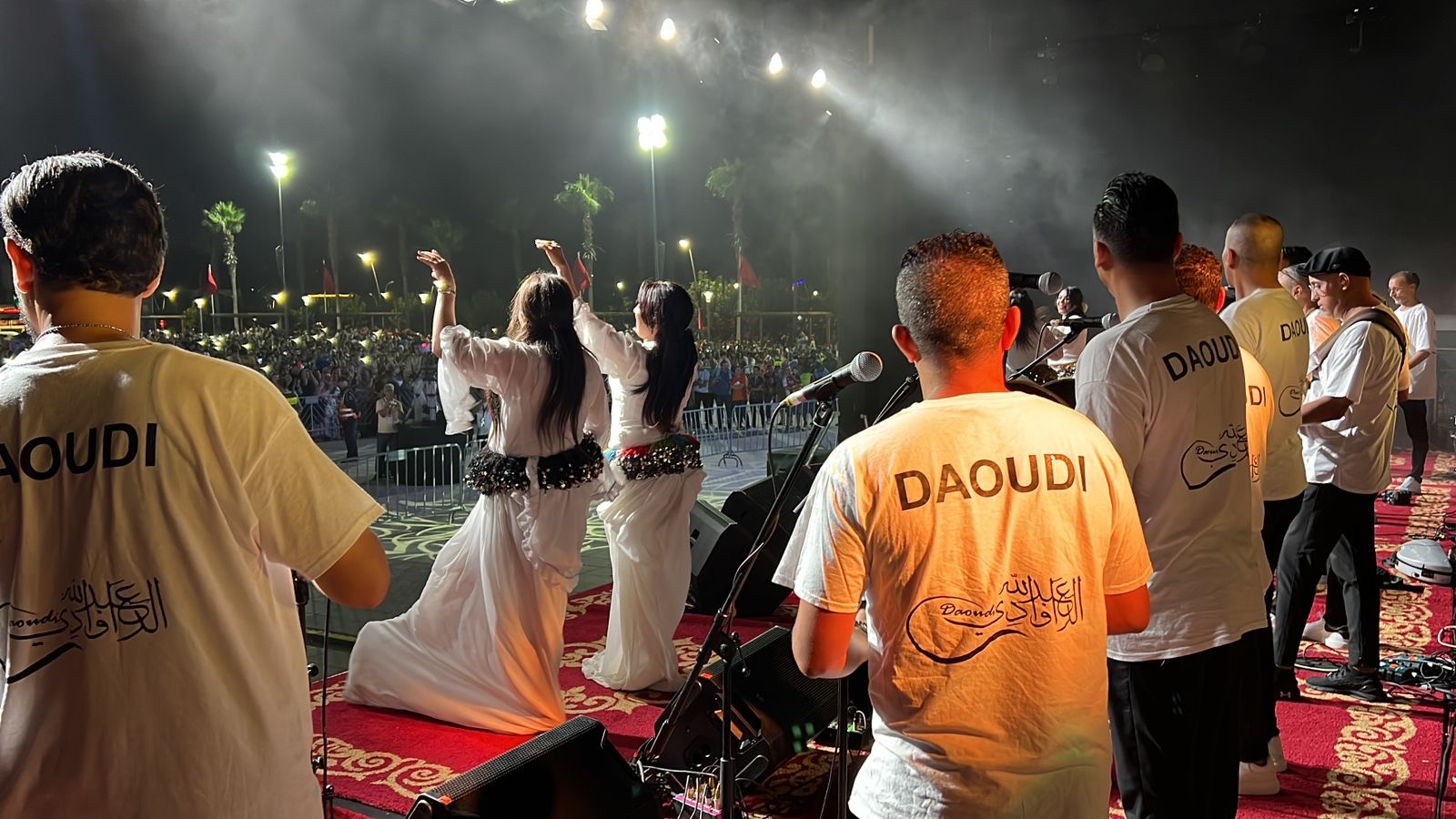 وقد حرص الفنان المتألق حاتم عبد الله الداودي ، على تلبية جميع طلبات الجماهير التي احتشدت بساحة مولاي الحسن بحي الدالية بمدينة تيفلت، والتي كانت تردد معه مختلف أغانيه، ومع ارتفاع الحماس اختار الفنان عبد الله الداودي أن يعود إلى أغانيه القديمة ، التي أداها بإحساس واتقان أمام جماهير مدينة تيفلت الذي تجاوب معها ورقص على نغماتها.