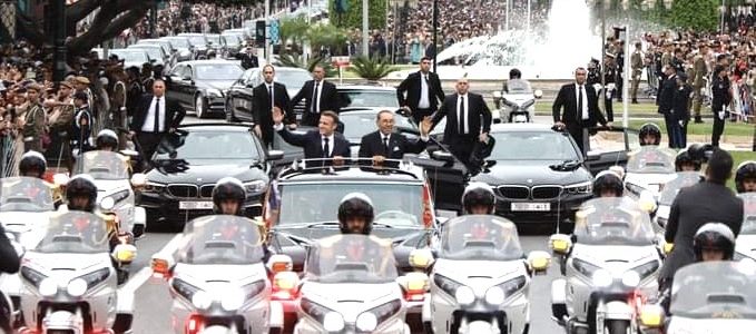 وبعد الوصول إلى “باب السفراء”، توجه الموكب، الذي خفرته فرقة من الخيالة تابعة للحرس الملكي، نحو ساحة المشور بالقصر الملكي بالرباط.