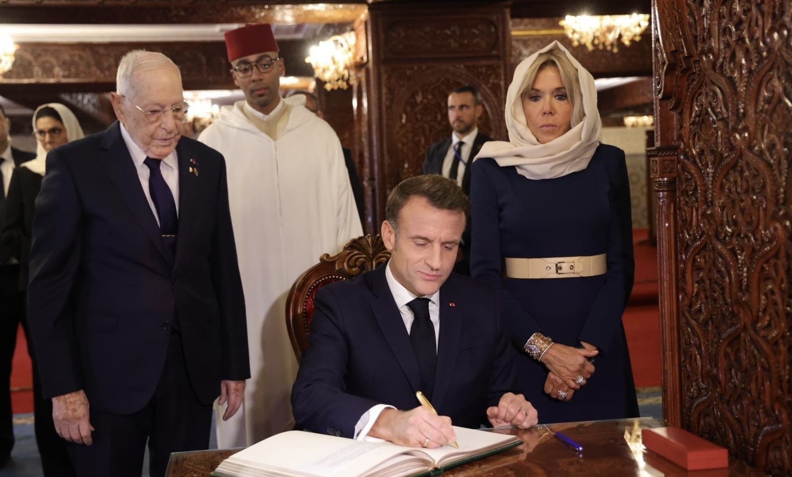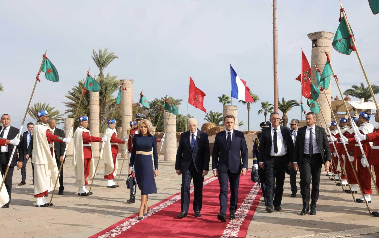 وكان السيد إيمانويل ماكرون وحرمه السيدة بريجيت ماكرون، قد حلا أمس الاثنين بالرباط، في زيارة دولة للمملكة المغربية، بدعوة كريمة من صاحب الجلالة الملك محمد السادس، نصره الله.
