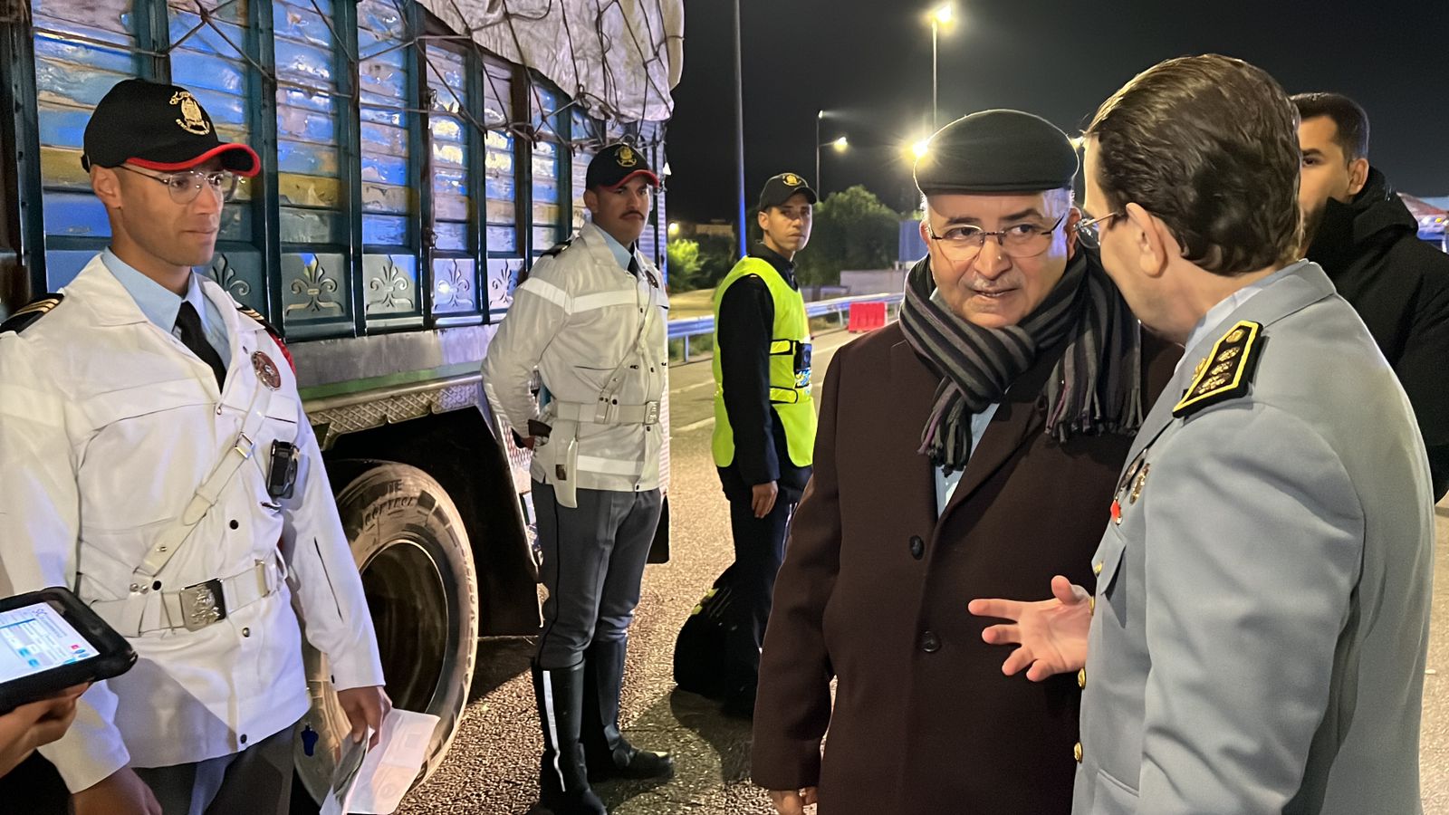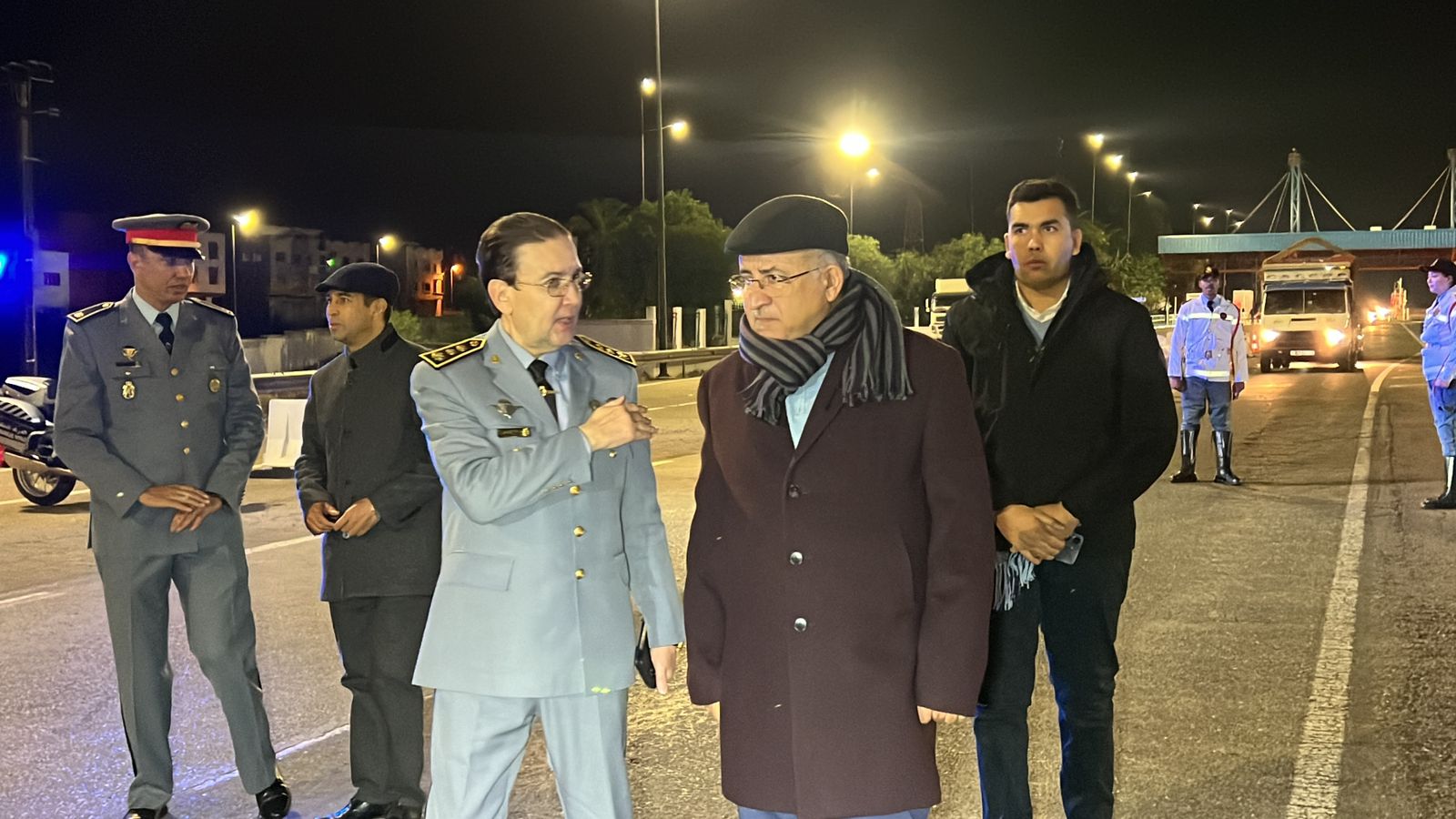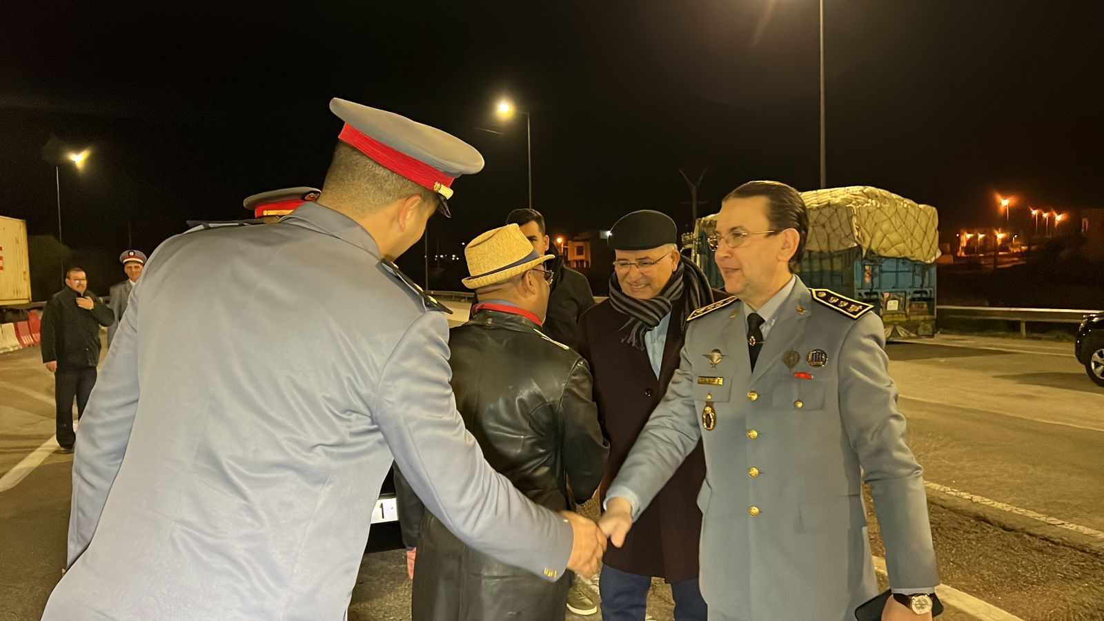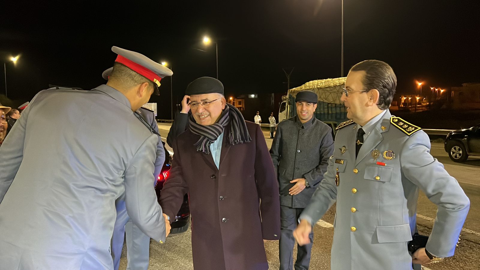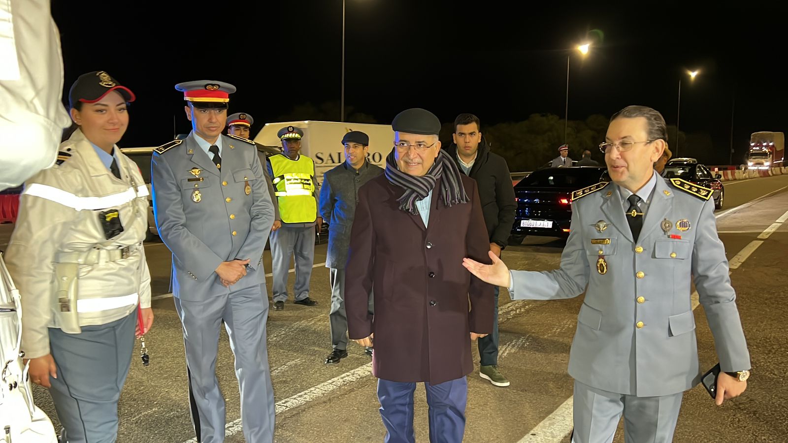 القائد الجهوي للدرك الملكي الكولونيل القادري ورئيس قسم الشؤون الداخلية السيد حسن العريف ومدير الديوان السيد نبيل العطار بزيارة تفقدية للسد القضائي بمدخل الطريق السيار البحراوي حيث وقف على التدابير والترتيبات الامنية المتخذة لتأمين ليلة رأس السنة، ولقد أشاد بالمجهودات التي يبذلها رجال الجنرال دكور دارمي محمد حرمو لحماية المواطنين وممتلكاتهم.