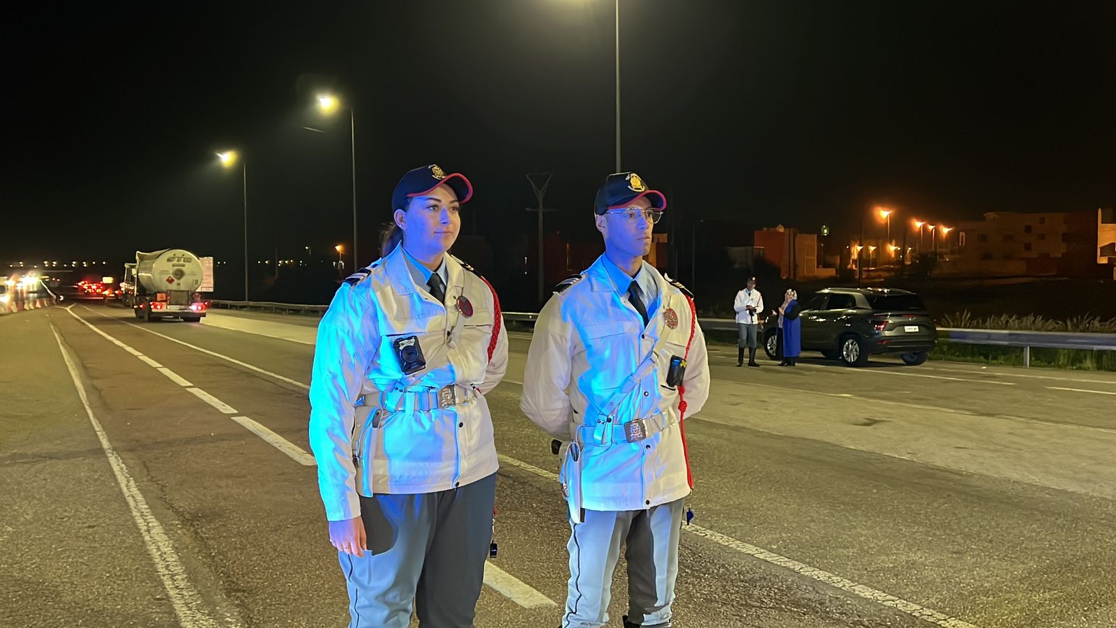 ولايسعنا إلا ان ننوه بالمجهودات الجبارة التي تقوم بها عناصر الدرك الملكي التابعة لكوكبة الدارجين بمحطة اداء الطريق السيارالبحراوي رغم برودة الجو فإن عيونها لاتنام من اجل السهر أمن وسلامة الساكنة من خلال التصدي لكل ما من شانه أن يمس استقرار هذا البلد الآمن.