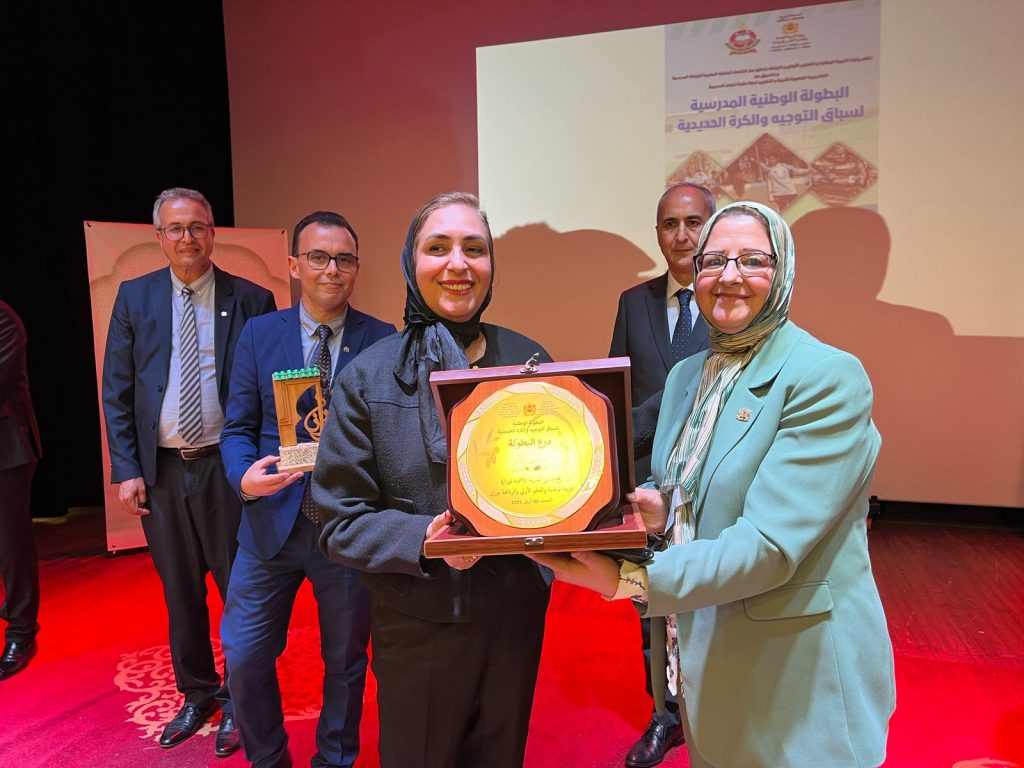 وبعدها أشرف الوفد الرسمي على تسليم الميداليات و الكؤوس على الفرق الفائزةبالبطولة الوطنية المدرسية لسباق التوجيه والكرة الحديدية