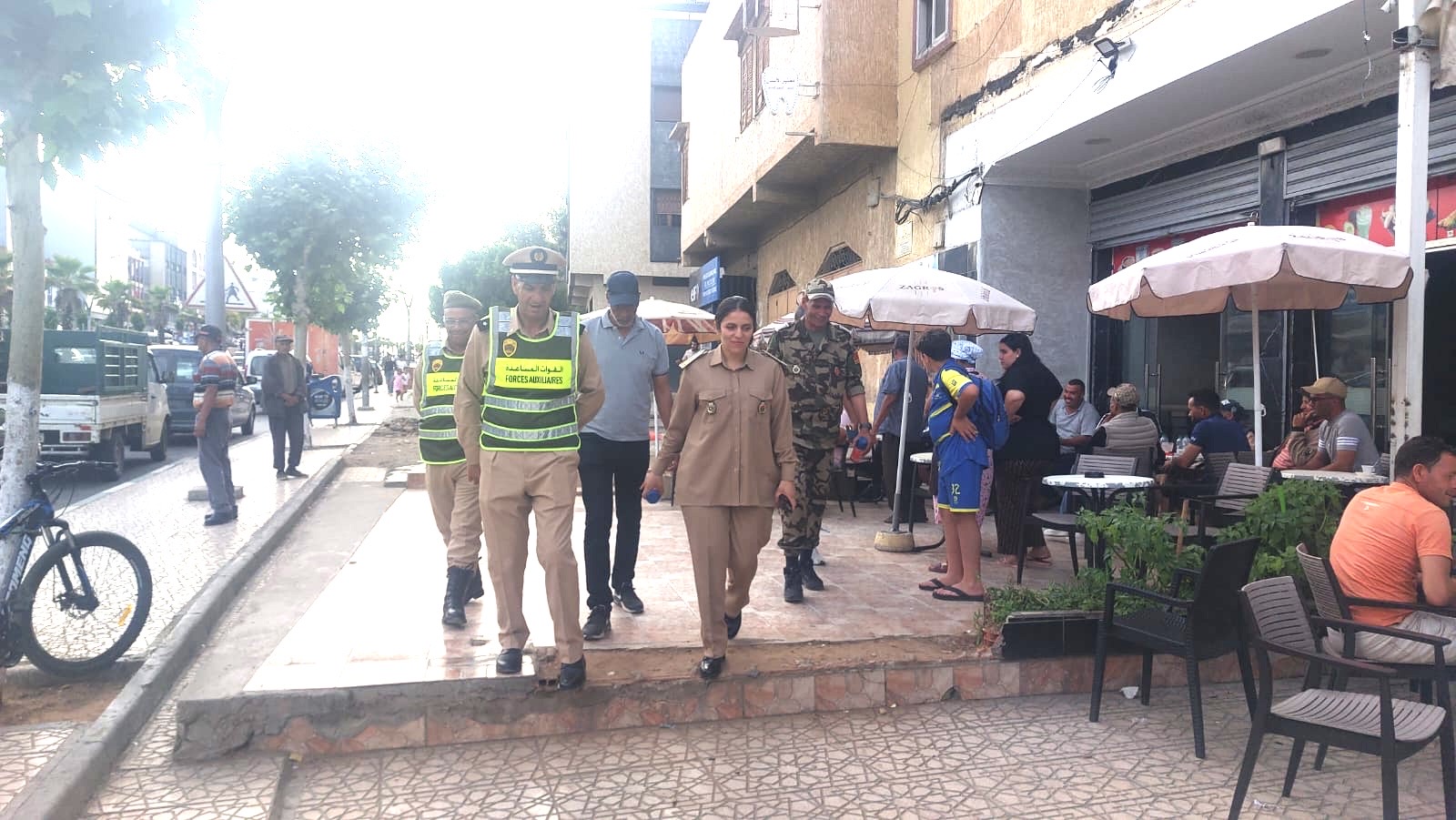 ركزت الحملة اليوم الجمعة 14 يونيو الجاري على تحديد المساحة القانونية الواجب استغلالها من طرف التجار وأصحاب المقاهي ، حيث قامت السيدة القائدة ومرافقيها بجولة على المحلات التجارية والمقاهي بكل من شارع ابن سينا بحي الرشاد وشارع محمد الخامس ، تم خلالها حث أرباب المقاهي والتجار على احترام القانون والالتزام بمقتضياته. و في نفس الوقت تم تحديد المساحة القانونية الواجب استغلالها من طرف التجار وأصحاب المقاهي ، بالشوارع المذكورة كما تم الوقوف عند المقاهي والمحلات التجارية لتحديد المساحة القانونية باستعمال المتر والتحديد بعلامات وهذا الاجراء يأتي بعد أن قام أغلب التجار وأصحاب المقاهي بازالة الواقيات الشمسية الباشات بأنفسهم .