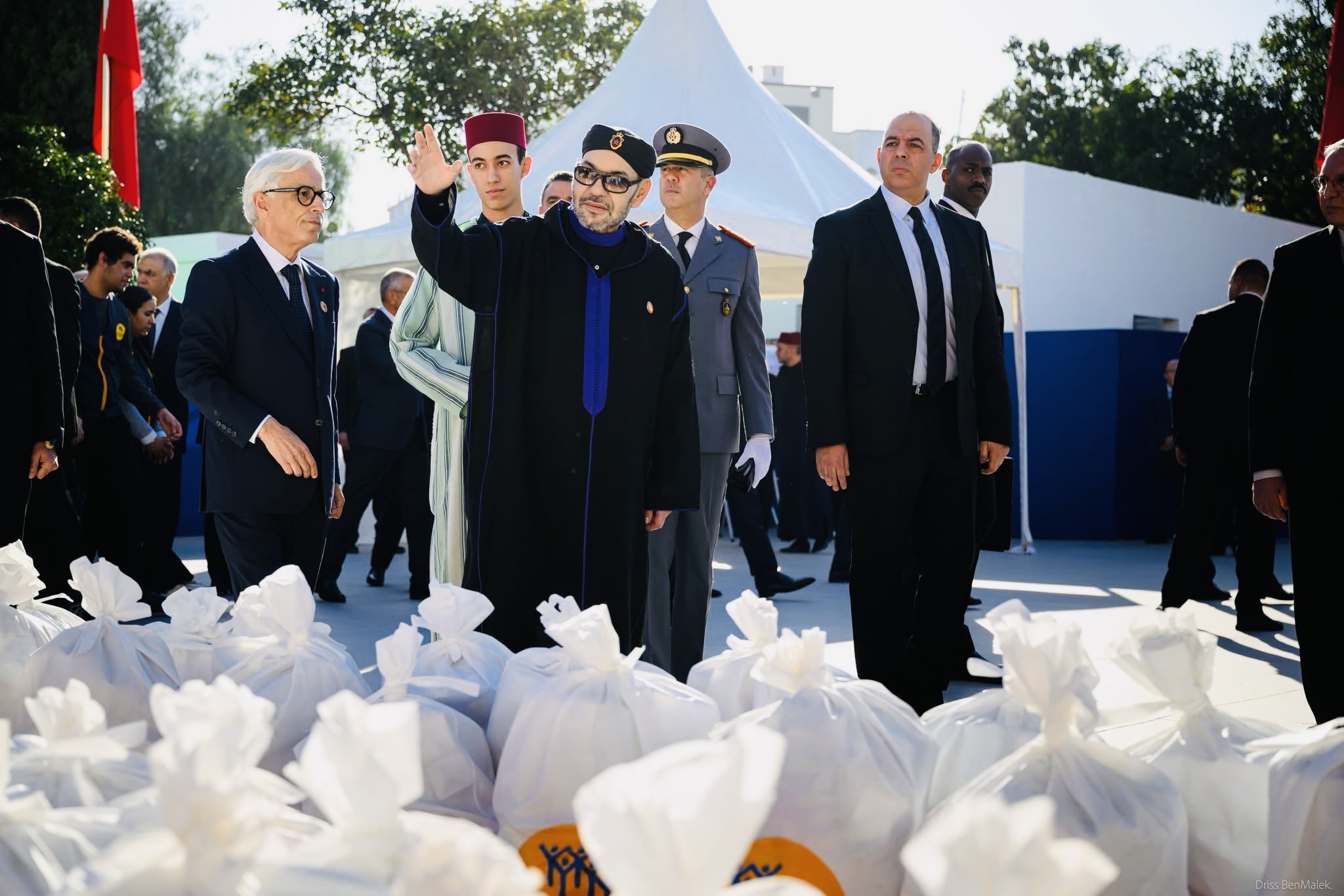 وبهذه المناسبة، سلم جلالة الملك، حفظه الله، مرفوقا بصاحب السمو الملكي ولي العهد الأمير مولاي الحسن، بشكل رمزي، قففا من المواد الغذائية لـ 10 من أرباب أو ممثلي الأسر المستفيدة من عملية “رمضان 1447″، قبل أن تؤخذ لجلالته صورة تذكارية مع متطوعين مشاركين في هذه العملية التضامنية.