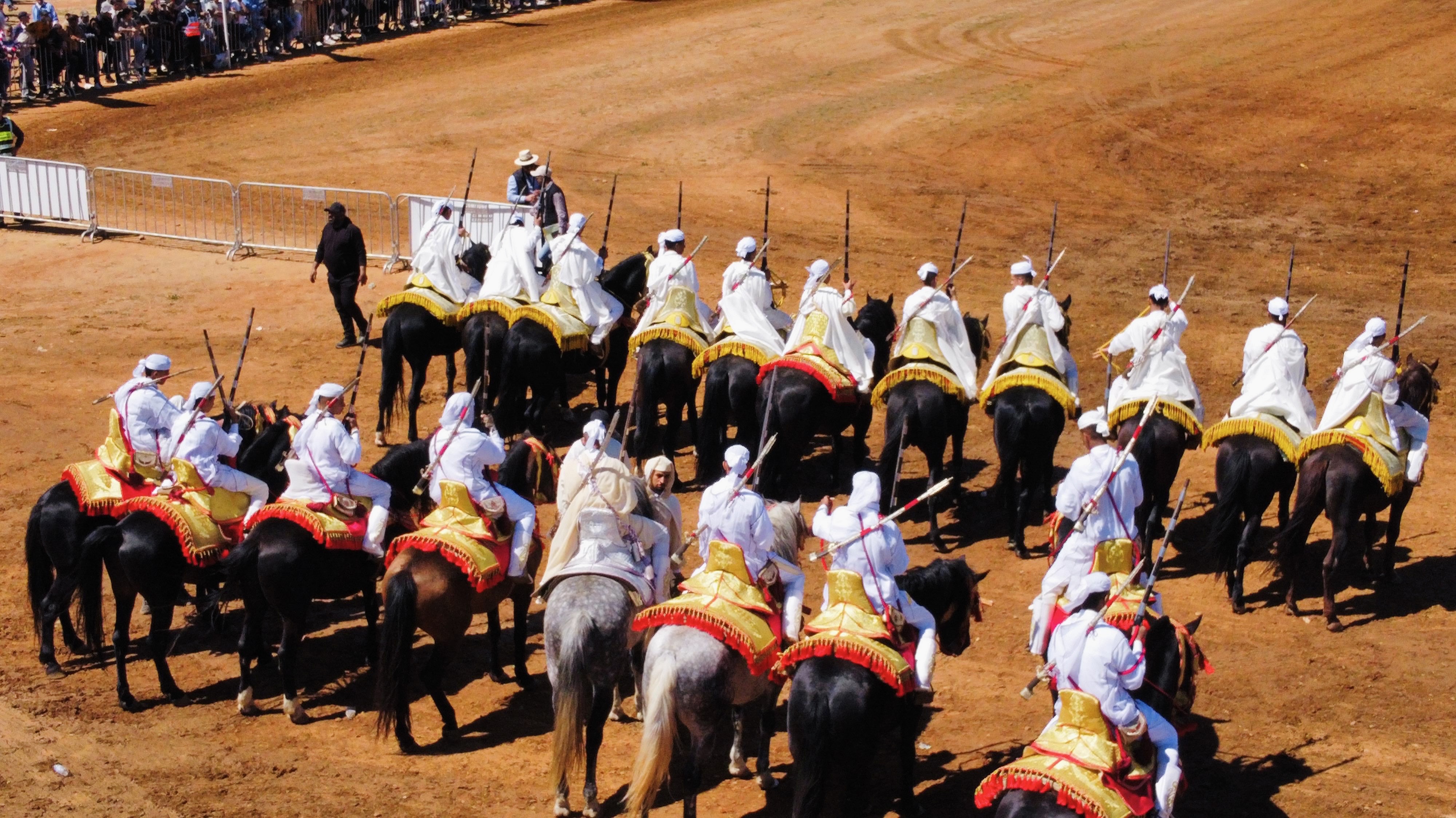 1- الانضباط: الالتزام بالزي التقليدي الموحد وجمالية السروج المطرزة.