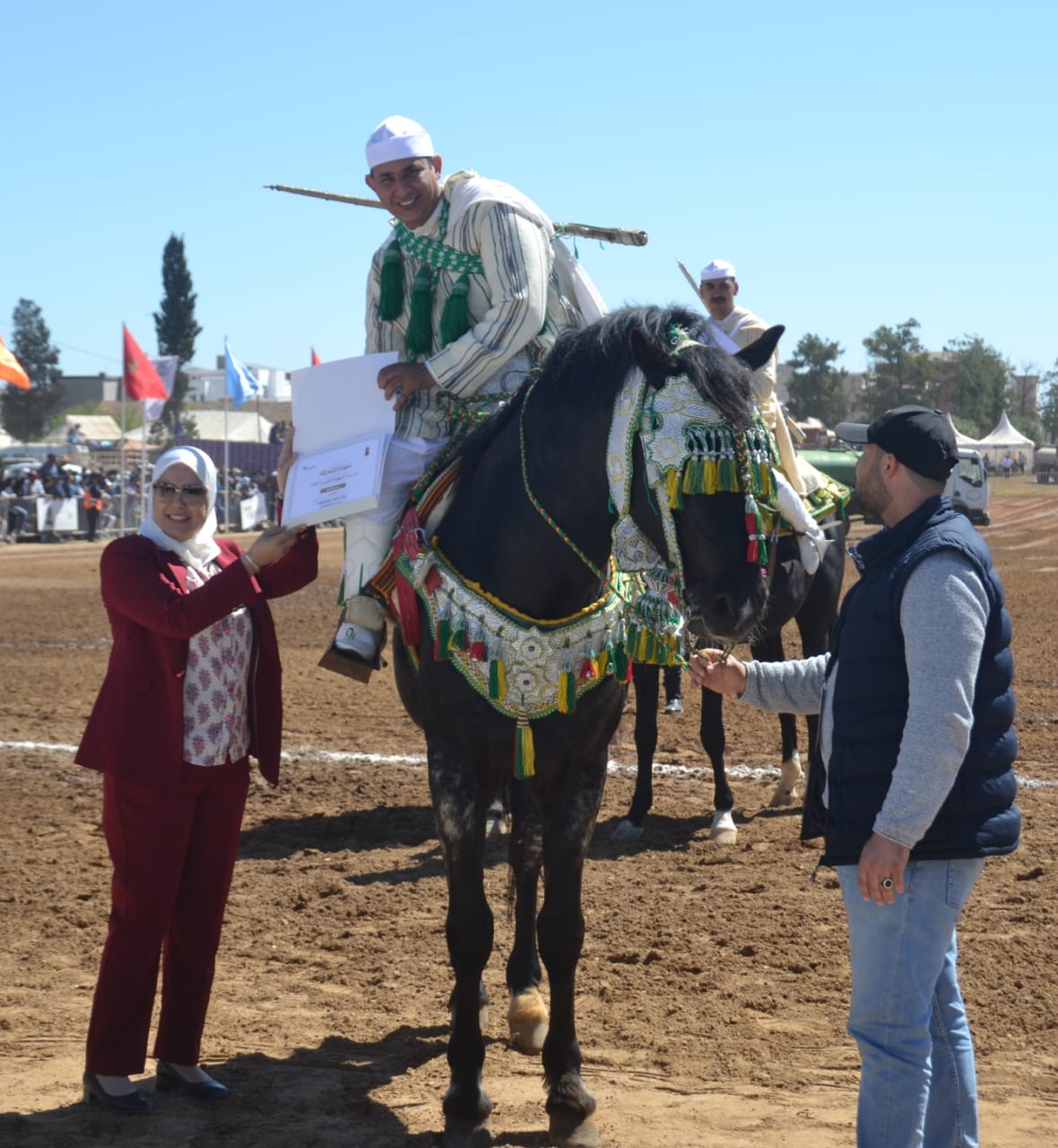 وتأهل للاقصائيات بين الجهات التي ستقام ببوزنيقة كل من جمعية اولاد عزوز للتبوريدة برئاسة المقدم يحيى القدسي محتلة المرتبة الاولى برصيد 73,50نقطة وفي المرتبة الثانية جمعية القنيطرة للتبوريدة برئاسة المقدم صلاح الدين الغمشاوي برصيد 68,50 وفي الختام تم توزيع الشواهد على المشاركين