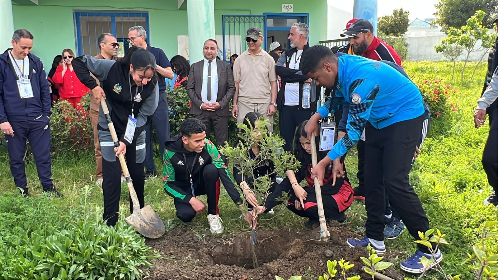 تحت شعار “شجرة من أجل المناخ”، شارك تلاميذ، يمثلون مختلف جهات المملكة، في عملية تشجير واسعة بساحة المدرسة. ولم تكن هذه العملية مجرد نشاط عابر، بل لحظة تربوية قوية لغرس قيم الانتماء للأرض وتحمل المسؤولية تجاه البيئة في نفوس الأبطال الرياضيين الشباب.