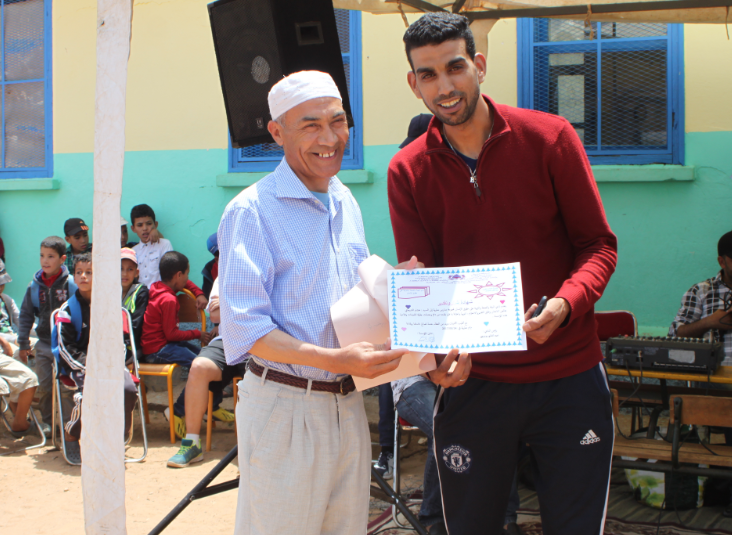 وتضمن هذا الحفل الذي كان ناجحا بكل المقاييس العديد من الانشطة حيث كانت البداية مع النشيد الوطني تلته اغنية وطنية من أداء الفنان عبدالله مرشا الذي اتحف الحاضرين باغاني عصرية تجاوب معها الجميع ،وبعد ذلك قدم المنشط والمسرحي هشام الشيحاني فقرتين تنشيطيتين تضمنتا اغاني ورقصات نالت إعجاب التلاميذ وتجاوبوا معها بحرارة ،فيما قدم المنشط جلال الكارة فقرة البهلوان بكل اقتدار صفق لها التلاميذ بحرارة ،أما محسن العاتي نجم الألعاب السحرية بتيفلت فامتع الحاضرين بمجموعة من الألعاب السحرية نالت الإعجاب ، وجاء دور الحكاية حيث قدم الفنان المسرحي رئيس فرقة تيفولت رشيد قولة حكاية لها اكثر من معنى تطرق فيها للبيئة والغابة وضرورة الحفاظ عليهما ،وقدم الفنان عزيز الدفادي رئيس جمعية القطبيين شريك المؤسسة مجموعة من الأغاني الشعبية ،ولقد رافق الفناني الموسيقي المتالق العازف على آلة لورك عبد الحكيم جامة . ولم يخل هذا الحفل المتميز من ابداعات تلاميذ م/م معاوية حيث تم تقديم مسرحيات وسكيتشات واناشيد .ليختتم هذا الحفل البهيج بتقديم شهادات اعتراف وتقدير للفنانين الذين تطوعوا لإدخال الفرحة والسرور على تلاميذ م/م معاوية كما قدمت شهادتين تقديريتين لكل من يوسف منيجل رئيس جمعية إفري الأطلس والسيد سوبي رئيس جمعية همار الإسبانية شركاء المؤسسة .