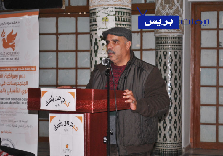 احتضن القصر البلدي بمدينة تيفلت بعد زوال اليوم الجمعة 14 دجنبر الجاري ندوة إطلاق مشروع “دعم مواكبة الفتيات المتمدرسات في السلك الثانوي التأهيلي بالمجال القروي بإقليم الخميسات من طرف معهد بروميثيوس ،بحضور المدير الإقليمي لوزارة التربية الوطنية خالد زروال والمكلف بالتواصل بالمديرية حميد حبيبي والمنسق العام لمعهد برومثيوس ياسين بزاز ونائب رئيس المجلس البلدي لتيفلت مصطفى بومهدي ونائب رئيس مجلس المعازيز ومستشار وزير الصحة أشرف شهبون ونائبة رئيس مجلس الرماني والتلميذات المستفيدات من المشروع وفعاليات جمعوية وإعلامية .في بدايته رحب عبدالمالك عروي بالحاضرين شاكرا كل من ساهم من قريب أو بعيد في ان يرى هذا المشروع النور وعلى رأسهم معهد برومتيوس للديمقراطية وحقوق الانسان وجميع الشركاء من مجالس جماعية لكل من تيفلت والرماني والمعازيز والمديرية الإقليمية للتعليم بالخميسات والمجلس الوطني لحقوق الانسان وجمعيات الاباء و Manos Unidas.ولقد تناوب على المنصة العديد من الضيوف الذين أشادوا بهذه المشروع نظرا للدور المهم الذي سيلعبه للمساهمة في الحد من ظاهرة الهدر المدرسي في صفوف الفتيات بالمجال القروي متمنين أن يعمم ذات المشروع على جماعات الإقليم .